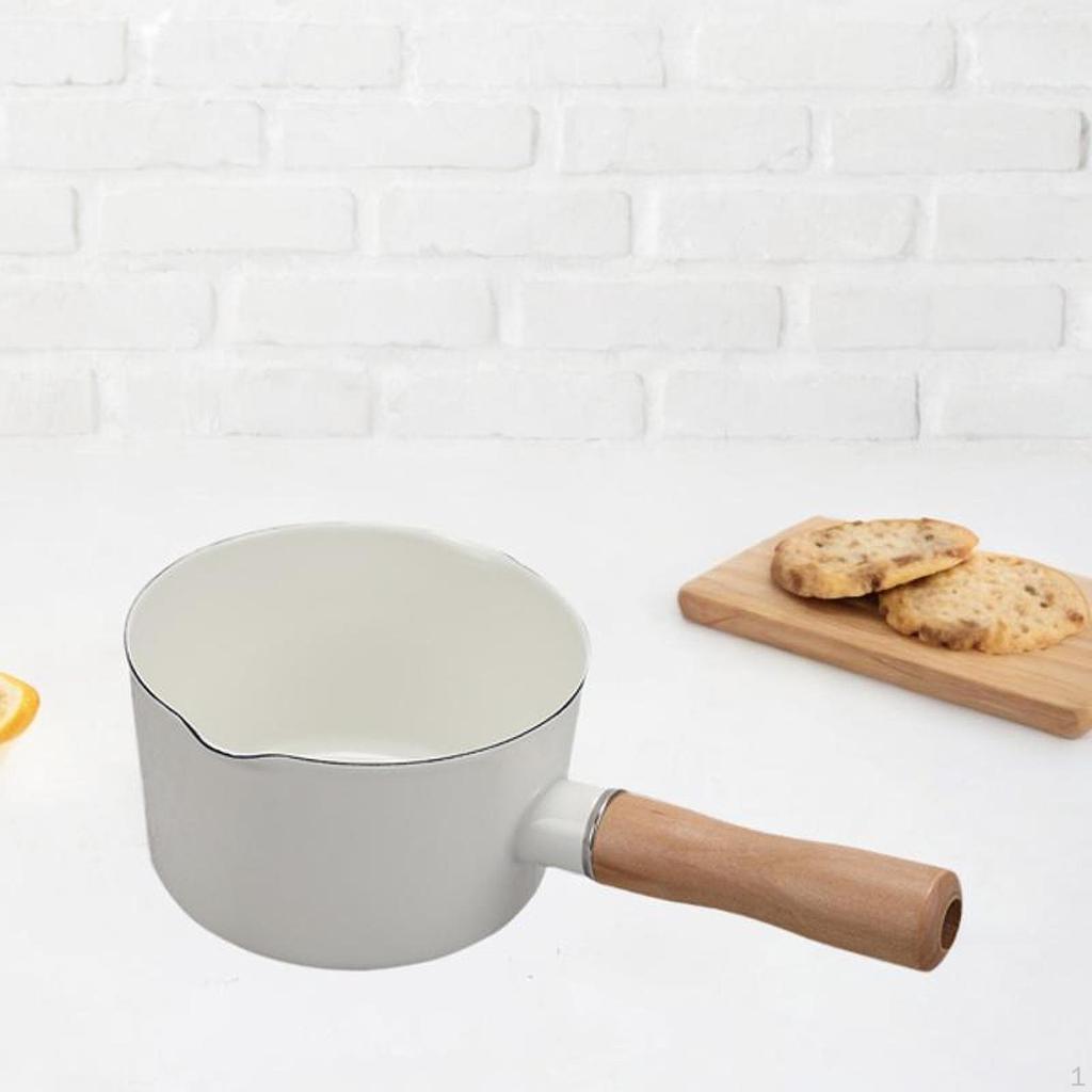 Эмалированная кастрюля для молока с деревянной ручкой, двойной носик с антипригарным покрытием, кастрюля для соуса
