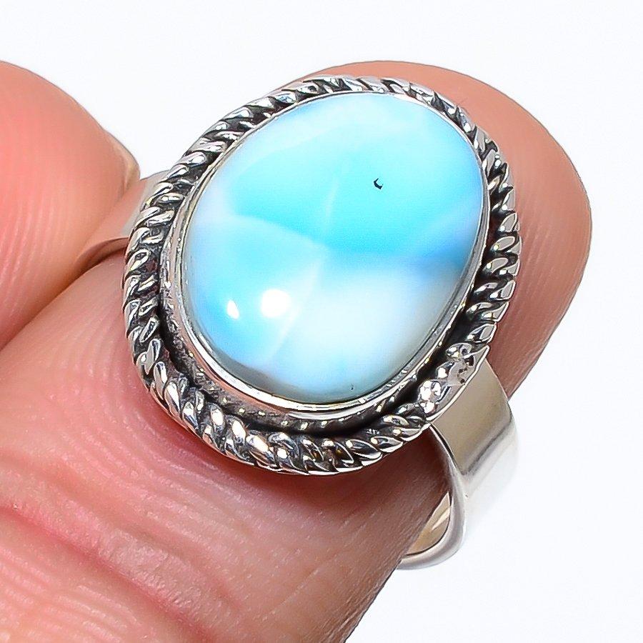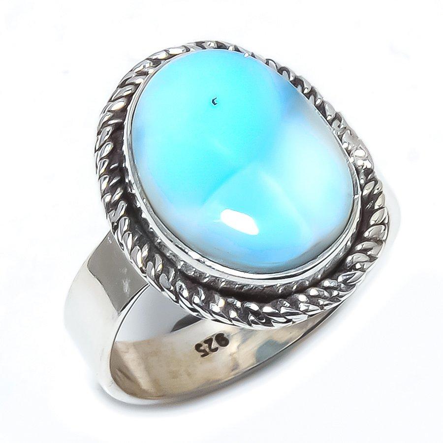Подарочное кольцо из натурального стерлингового серебра 925 пробы с драгоценным камнем Ларимар S.8 t0k39