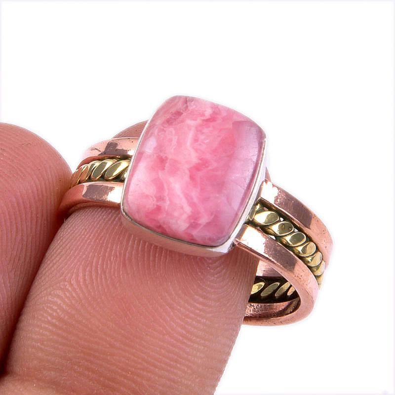 Двухцветное кольцо из чистого серебра 925 пробы с натуральным родохрозитом S.10 k4a27