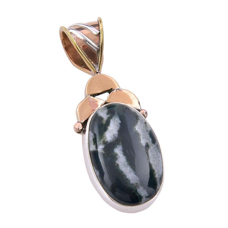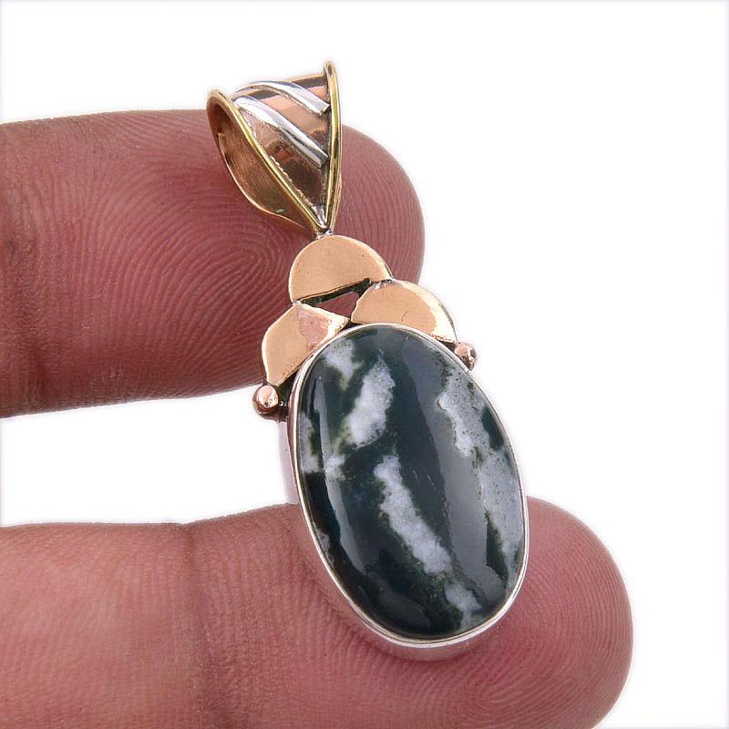 Ювелирные изделия из чистого серебра 925 пробы с натуральным кровавым камнем, двухцветный кулон 1,50 дюйма r7p73
