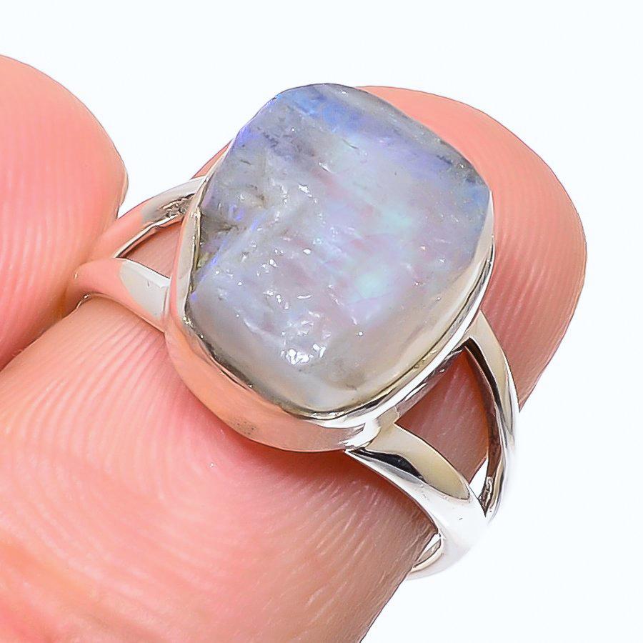 Кольцо из цельного стерлингового серебра 925 пробы с натуральным камнем Лунный камень с радужным сиянием, размер 6.5 o0f36 — купить товар онлайн с бесплатной доставкой по всему миру!