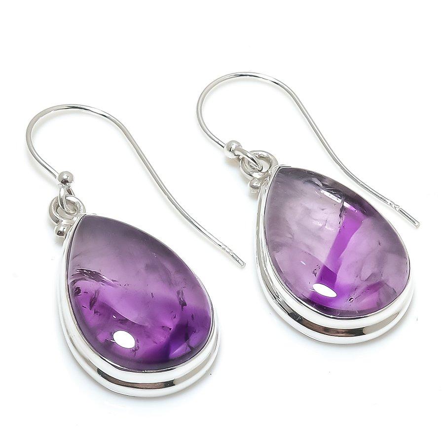 Серьги из чистого серебра 925 пробы с натуральным бразильским аметистом 1,75 дюйма B5Q49