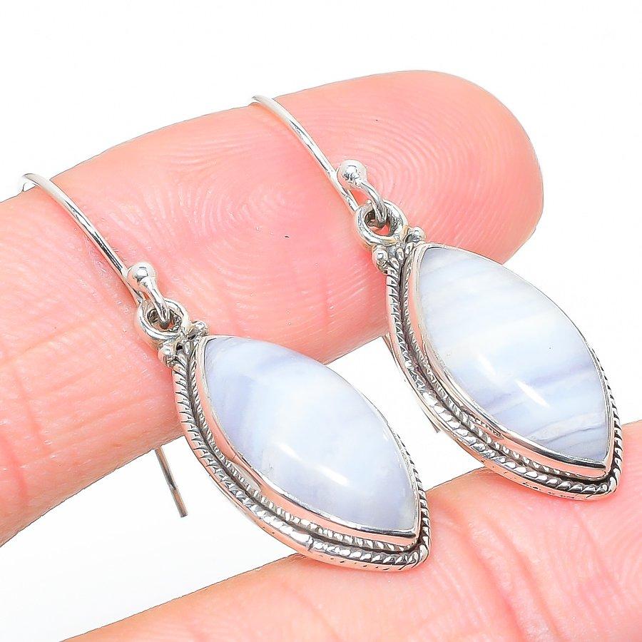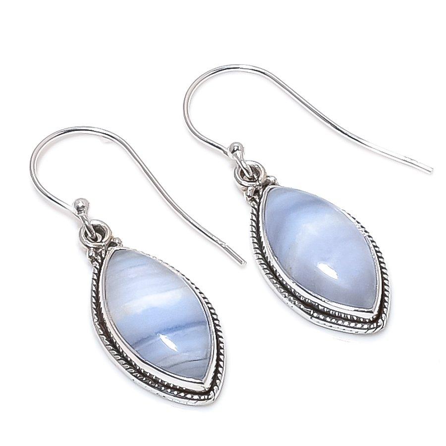 Серьги из стерлингового серебра 925 пробы с натуральным синим кружевным агатом, размер 1,50 дюйма, D8z80