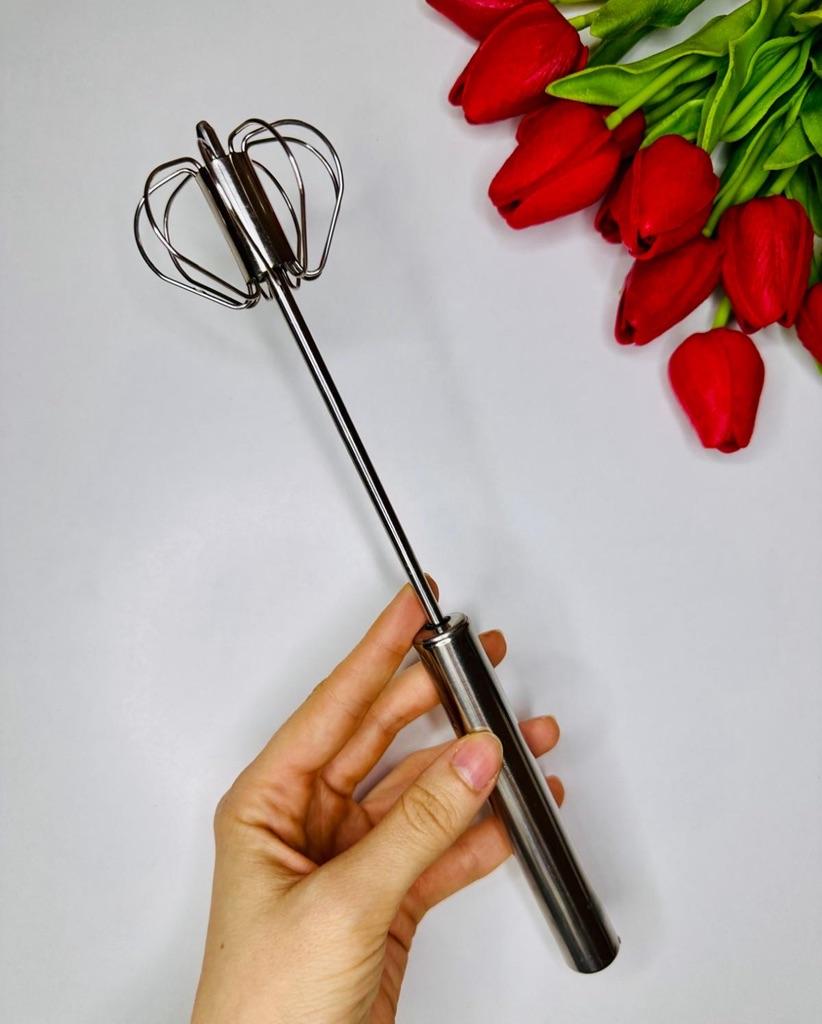 Полуавтоматический венчик 🍳 При нажатии начинает крутиться. Очень удобный, и почему я раньше таким не пользовалась?! Качество хорошее. Выполнен из нержавеющей стали. Размер идеальный, какраз то, что нужно. Рекомендую 🤗