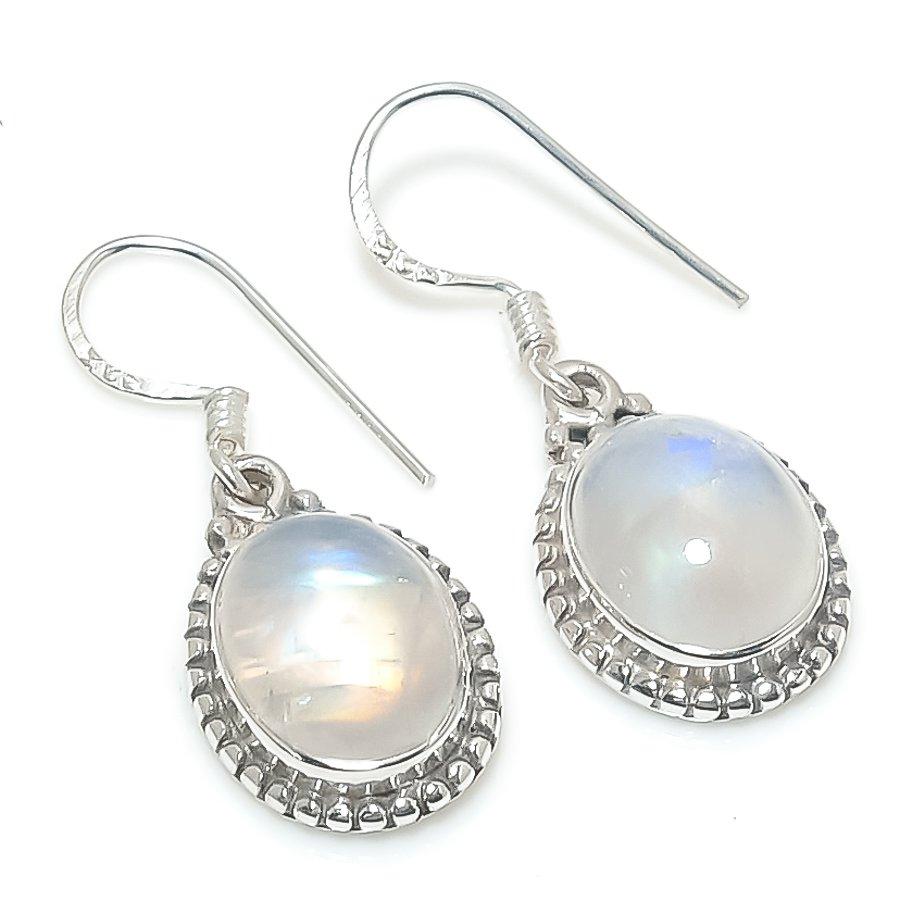 Серьги из чистого серебра 925 пробы с натуральным радужным лунным камнем 1,25 дюйма r1w03