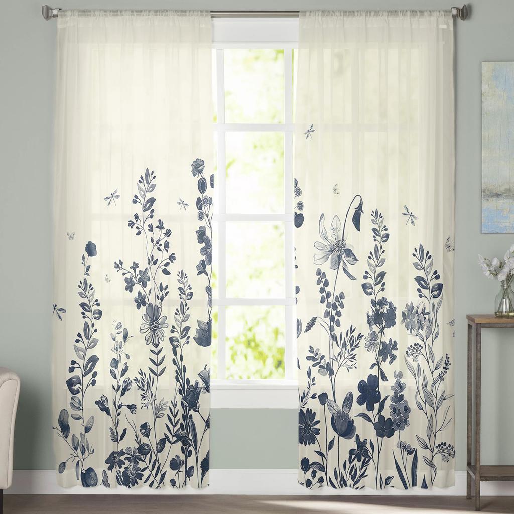 Цветы, листва, стрекозы, бабочки, вуаль, прозрачные шторы, тюлевые занавески для гостиной, окна, кухни, спальни, домашний декор