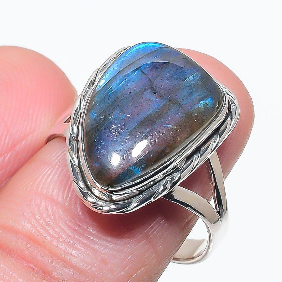 Ювелирное кольцо из твердого серебра 925 пробы с натуральным лабрадоритом ручной работы S.9.5 O5Q99 — купить товар онлайн с бесплатной доставкой по всему миру!