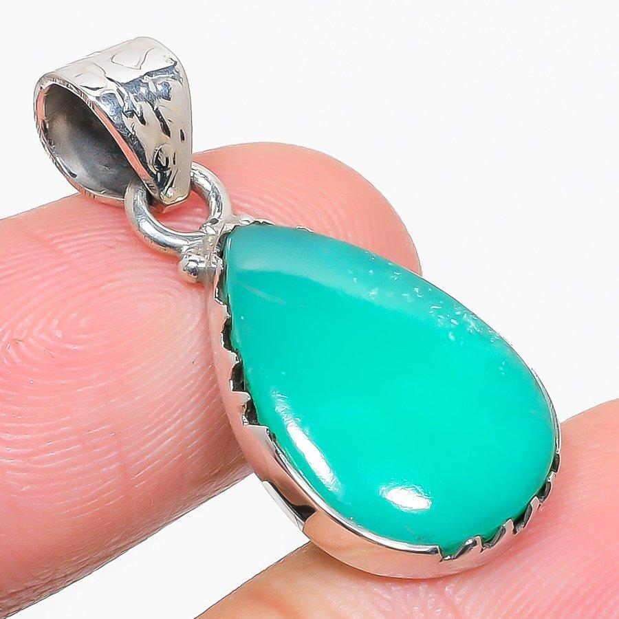 Натуральный драгоценный камень хризопраз из стерлингового серебра 925 пробы, подарочная подвеска 1,25 дюйма D1W92