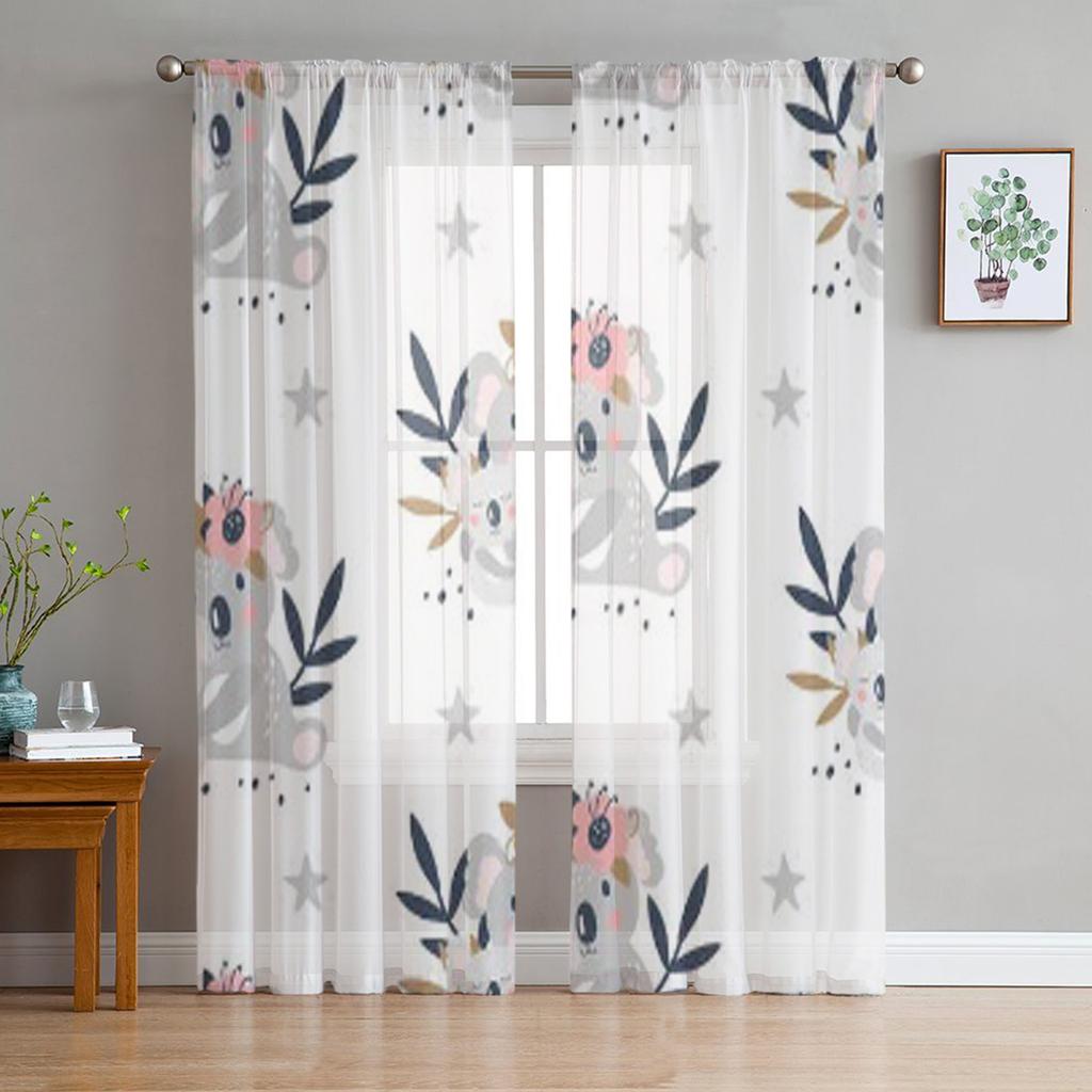 Симпатичные белые тюлевые прозрачные оконные шторы с коалой для гостиной, спальни, современная шифоновая вуаль, занавески из органзы, декор, шторы
