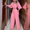 Женский летний повседневный костюм с v-образным вырезом, расклешенными рукавами и шнуровкой, широкие брюки, брюки