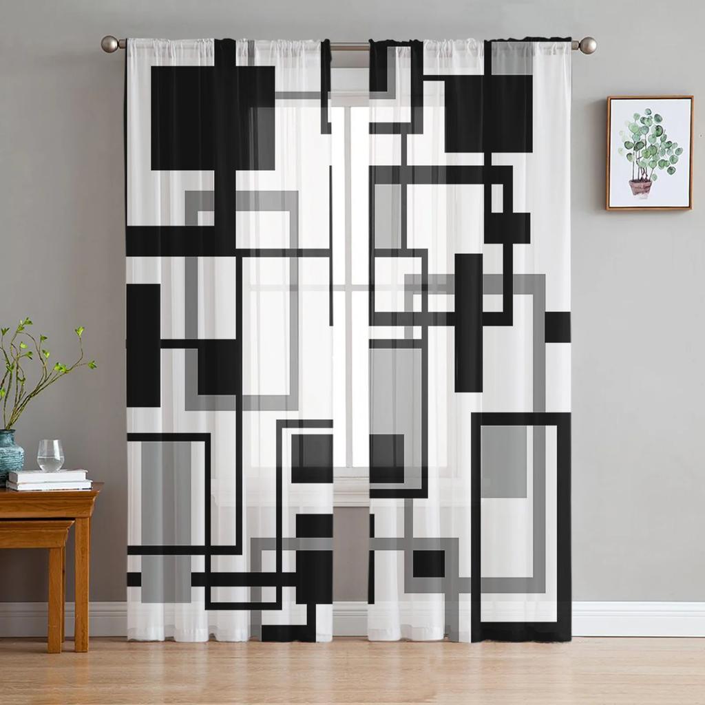 Геометрические черные, белые, серые прозрачные шторы из вуали для гостиной, окна, шифоновые тюлевые занавески, занавески для кухни, спальни, домашний декор