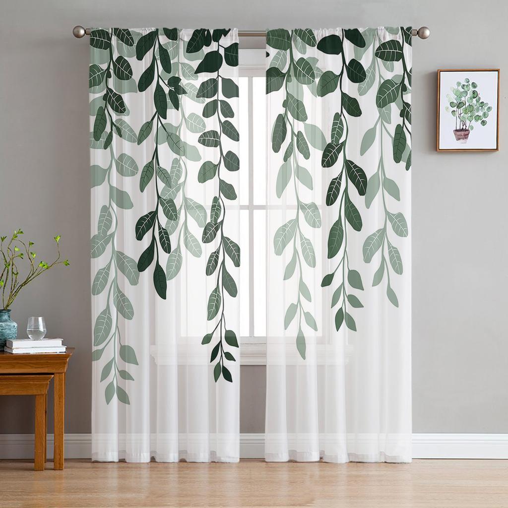 Листья растений, сельские зеленые прозрачные оконные занавески, тюлевые шторы для гостиной, спальни, отеля, домашний декор, вуаль, шторы