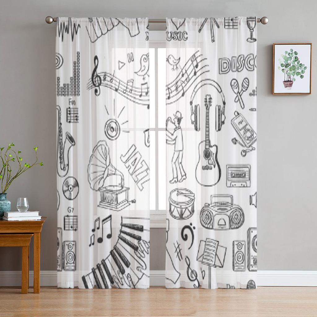 Музыкальные тюлевые шторы для гостиной, прозрачные шторы, вуаль для спальни, органза, декоративные оконные украшения