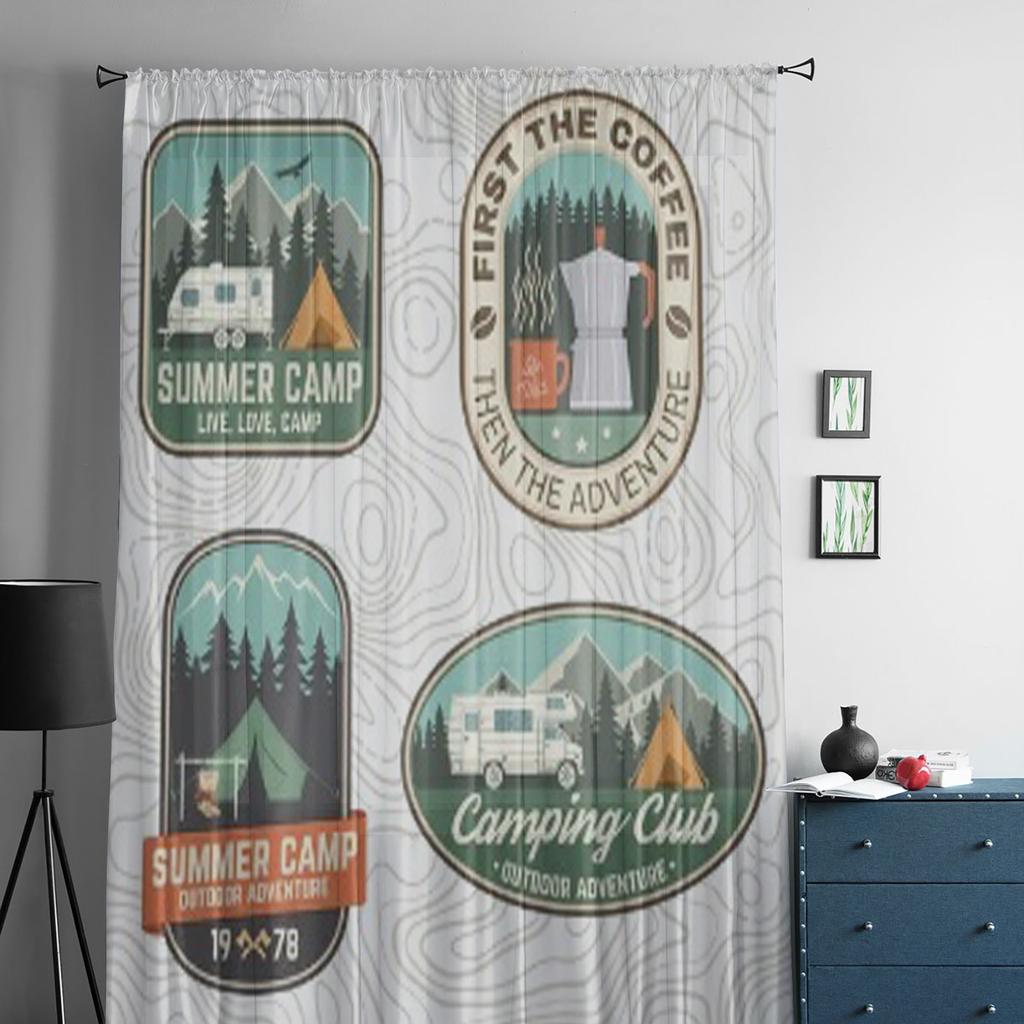 Набор значков клуба кемпинга и караванинга, шифоновые прозрачные шторы для гостиной, спальни, оконные вуали, тюль, занавески