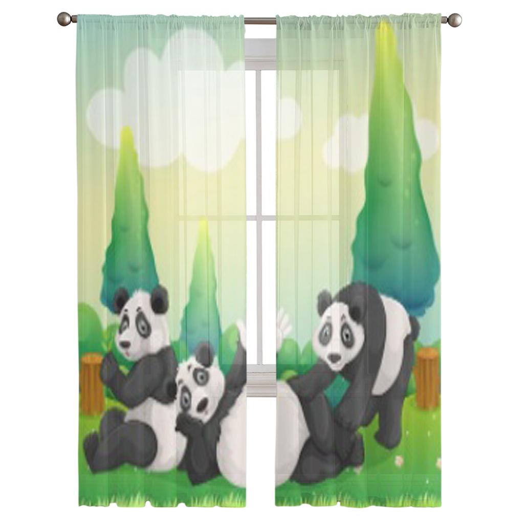 Три панды играют в парке Роскошные шифоновые прозрачные шторы для украшения гостиной, спальни, оконные вуали, тюлевая занавеска