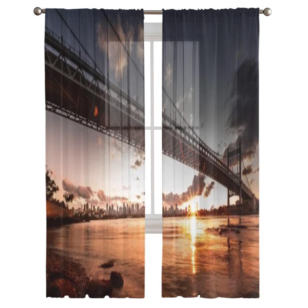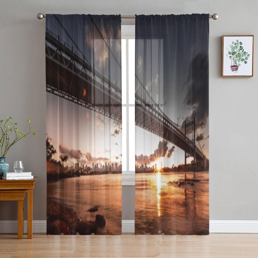 Мост Квинсборо Ист-Ривер на закате Шифоновые прозрачные шторы для гостиной, спальни, занавески на окна, вуали, тюль, занавески