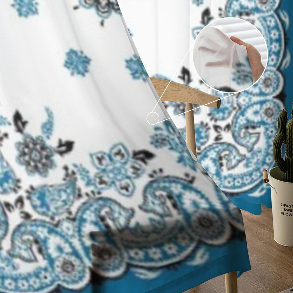 Бандана Синий Узор Тюль Прозрачные Шторы для Гостиной Украшения Шторы для Комнаты Спальня Кухня Вуаль Органза Шторы