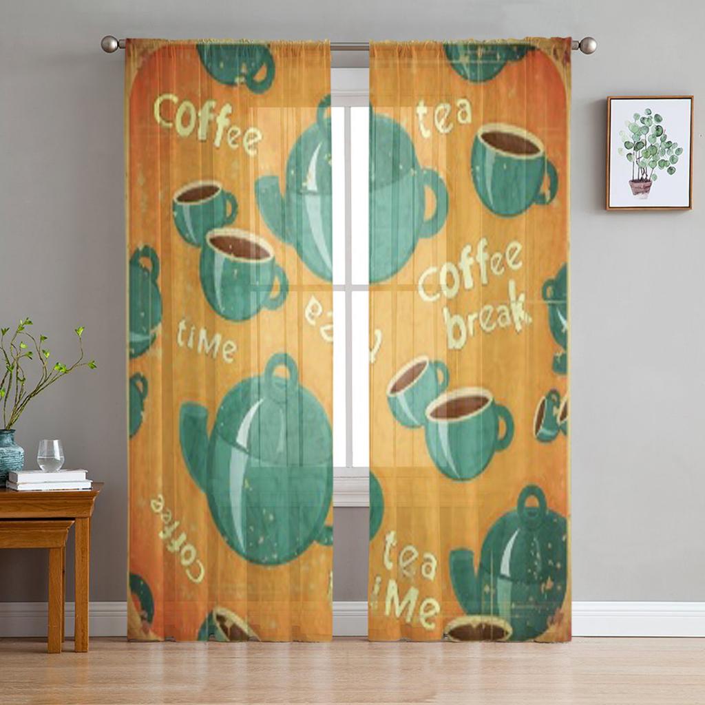 Меню кофе, чая, чашки, ретро-стиль, шифоновые прозрачные шторы для гостиной, спальни, украшение, оконная вуаль, тюлевая занавеска