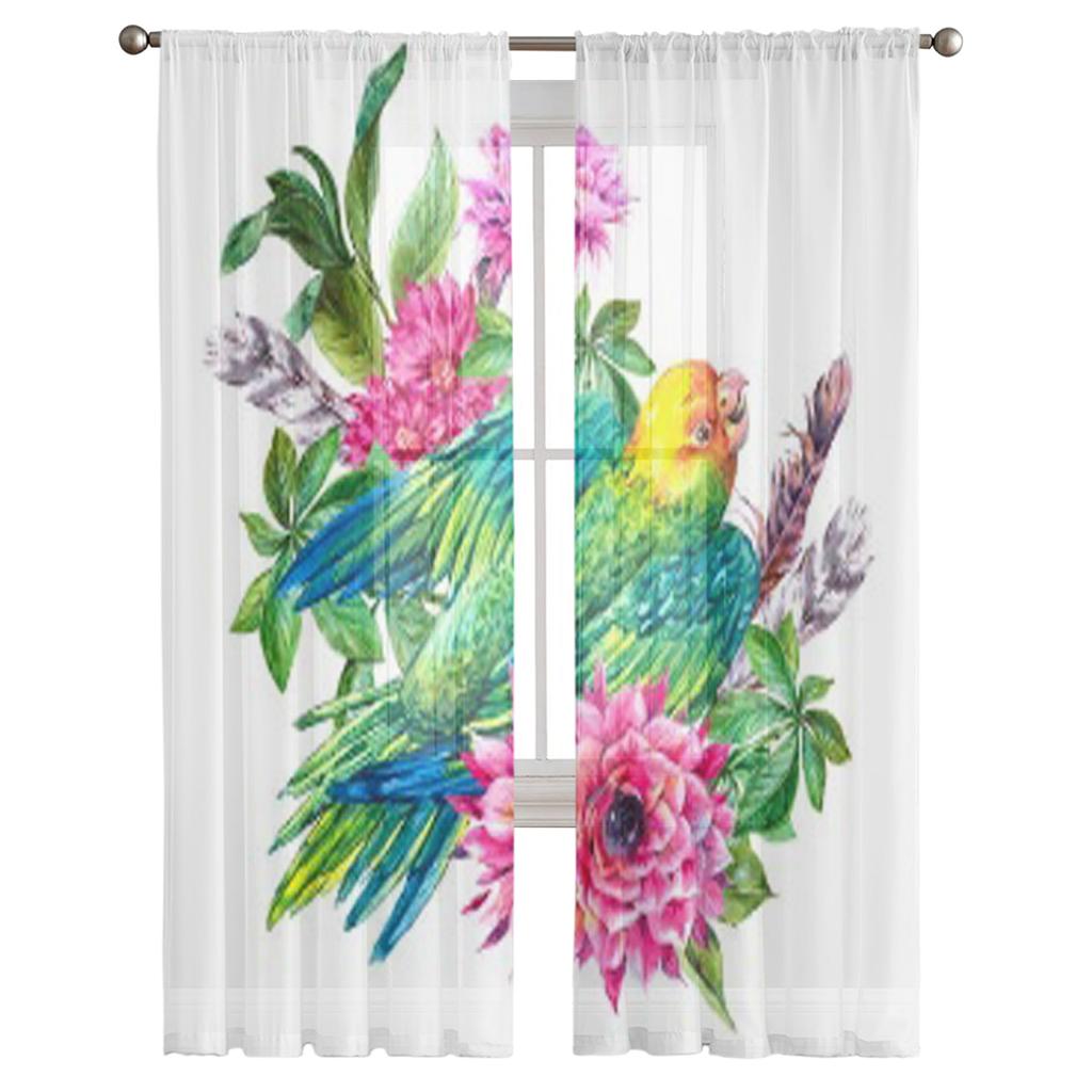 Тропические винтажные розовые цветы зеленый попугай прозрачные шторы для гостиной тюль оконная занавеска спальня кухня вуаль шторы