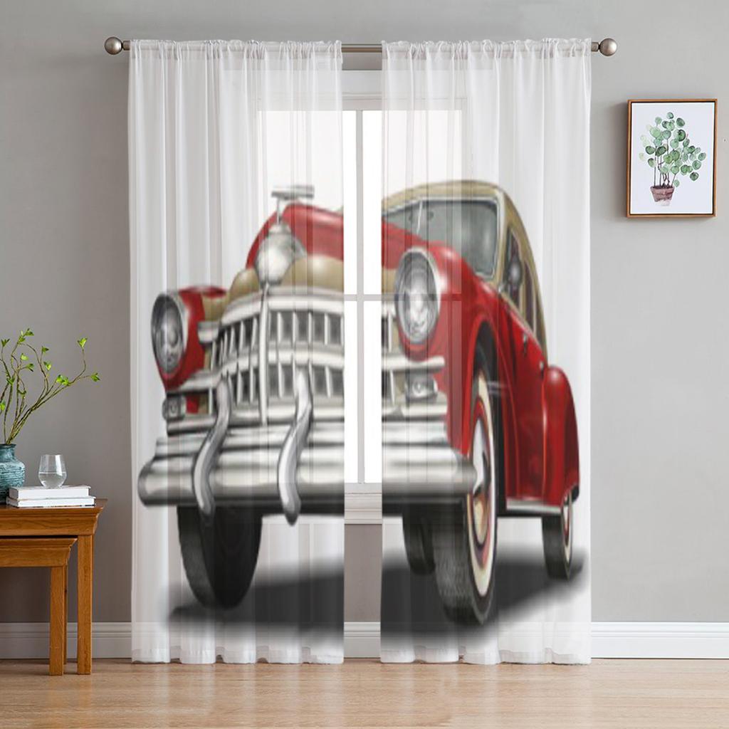 Ретро автомобиль тюль прозрачные шторы для окон для гостиной спальни современные шифоновые вуали органза шторы декоративные шторы