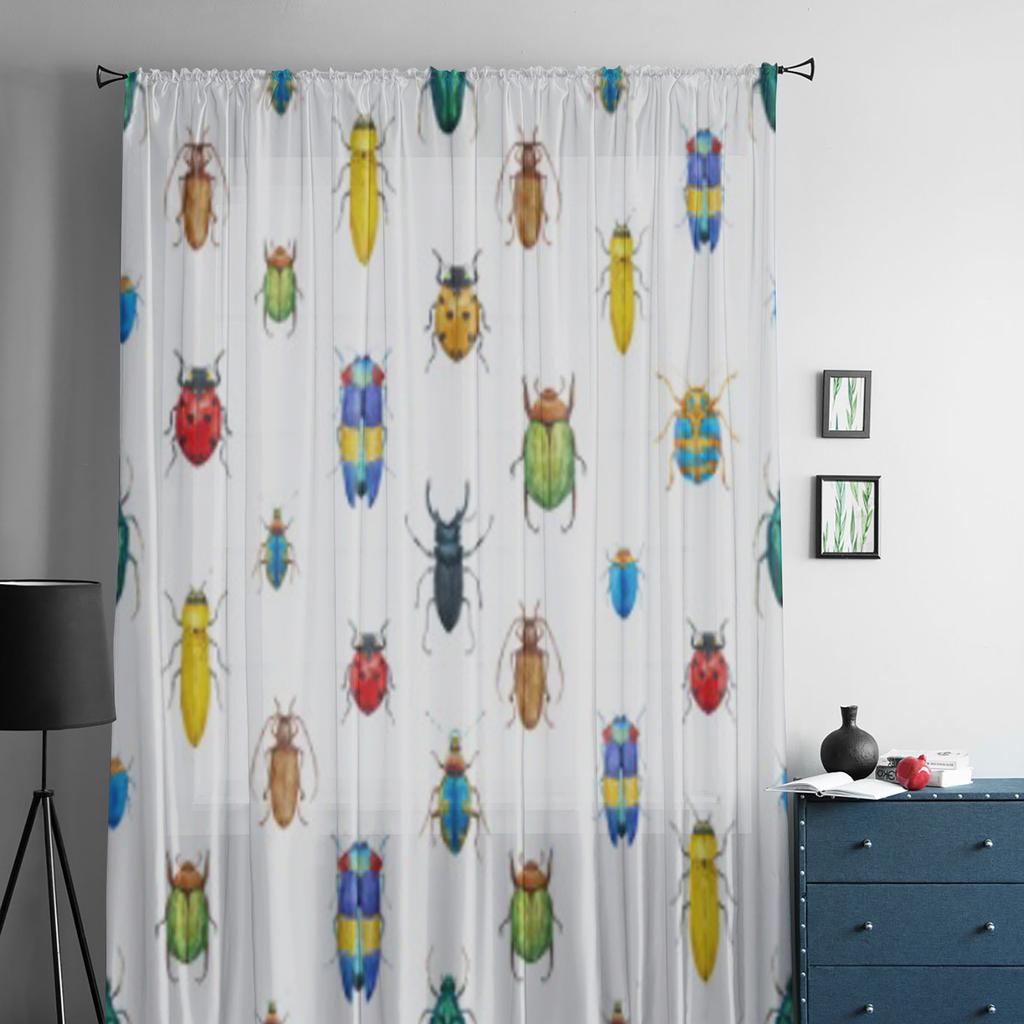 Красивые прозрачные тюлевые шторы с акварельными жуками для украшения гостиной, занавески для комнаты, спальни, кухни, вуаль, занавески из органзы