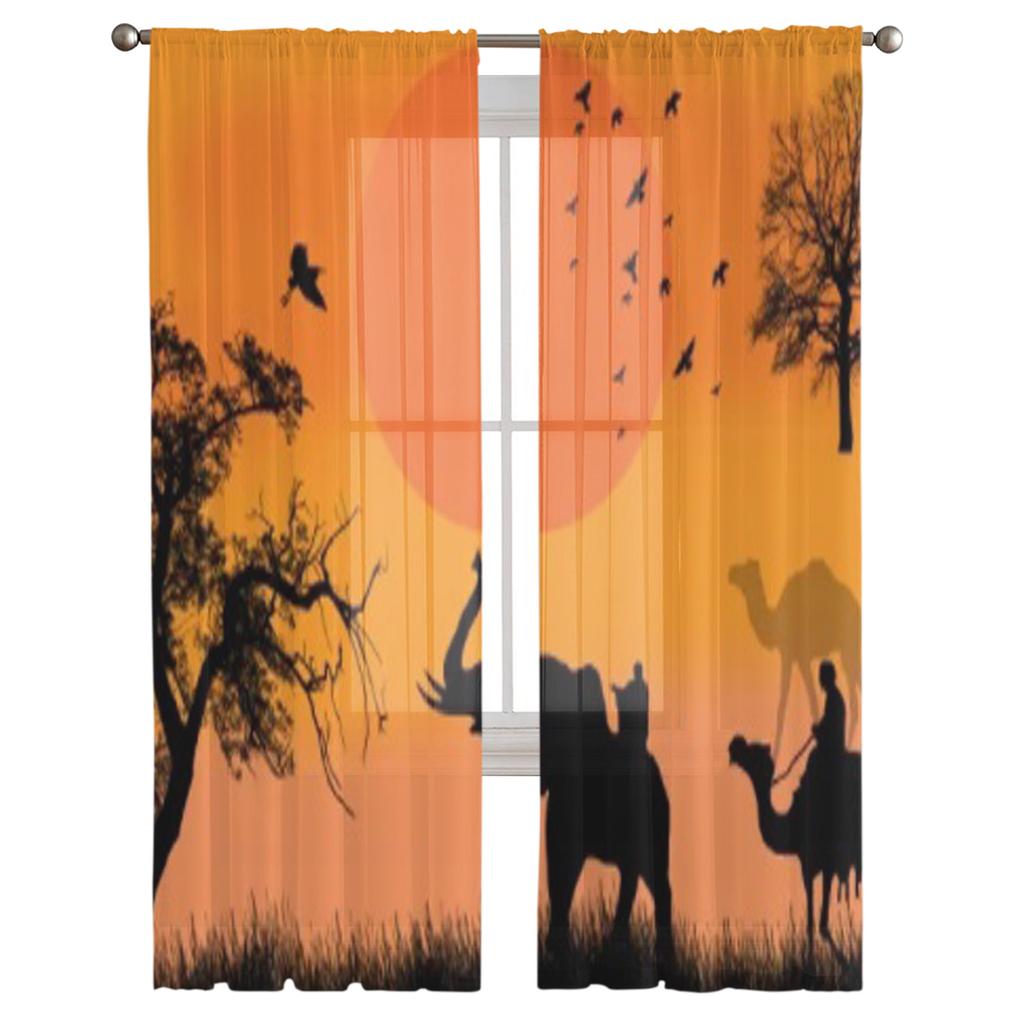 Африканское сафари с верблюдами и слонами на закате, тюлевые прозрачные шторы для гостиной, кухни, украшения, вуаль, шторы из органзы