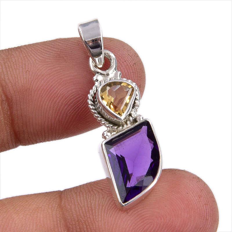 Natural Amethyst,Citrine Gemstone 925 Sterling Silver Jewelry Pendant 1.50" g8H27