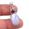 Подвеска из чистого серебра 925 пробы с натуральным радужным лунным камнем и гранатом 1,30 дюйма c6O98