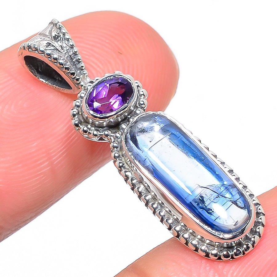 Подвеска из чистого серебра 925 пробы с натуральным кианитом и аметистом 1,26 дюйма N0I03