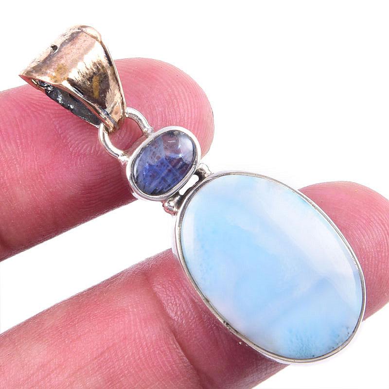 Подвеска из натурального серебра 925 пробы с ларимаром и кианитом, 1,50 дюйма, k0h56
