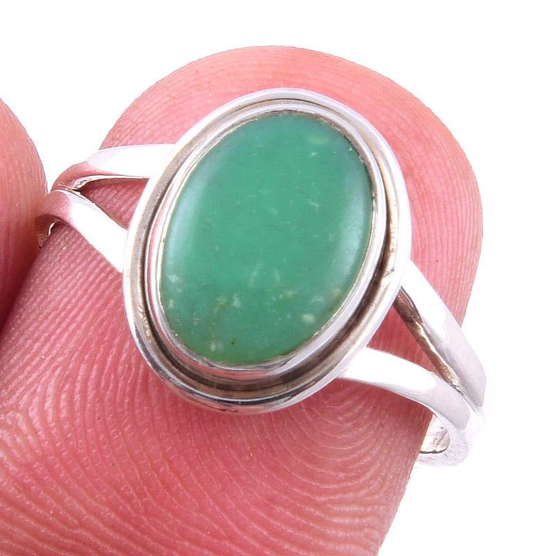 Кольцо ручной работы из чистого серебра 925 пробы с натуральным драгоценным камнем хризопраз, размер 7 L4J96