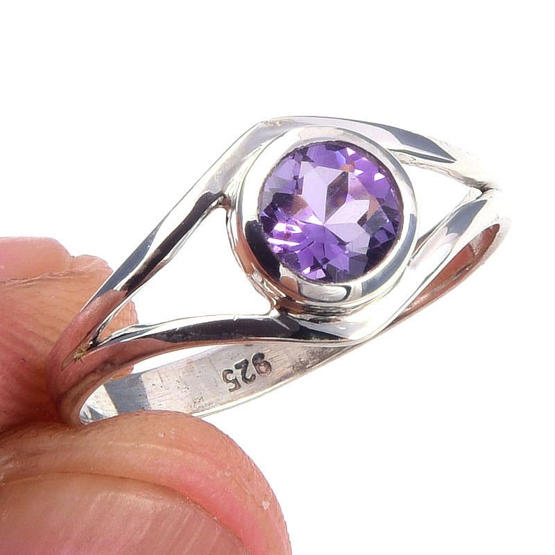 Кольцо из чистого серебра 925 пробы с натуральным аметистом ручной работы, размер 9 h5f08