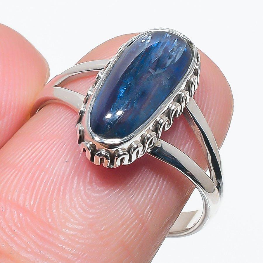 Ювелирное кольцо из натурального синего кианита ручной работы из твердого серебра 925 пробы, размер 8 w2v26