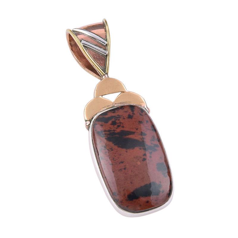 Подвеска из натурального красного дерева, обсидиана, стерлингового серебра 925 пробы, двухцветная, 1,75 дюйма, i5F96