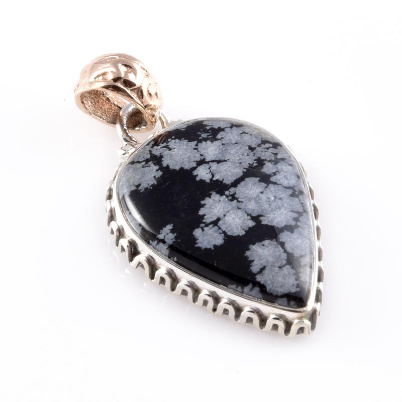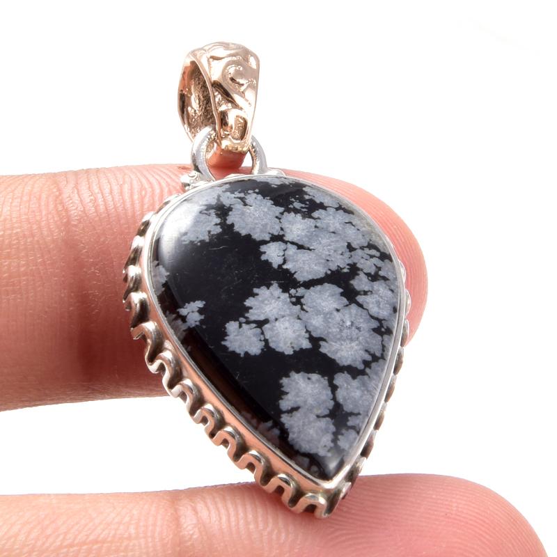Ювелирные изделия из натурального обсидиана снежинки из стерлингового серебра 925 пробы, двухцветный кулон 1,4 дюйма, H9z97