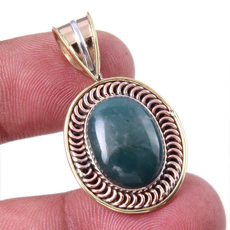 Натуральный моховой агат, двухцветный кулон из чистого серебра 925 пробы, размер 1,50 дюйма, E9k95