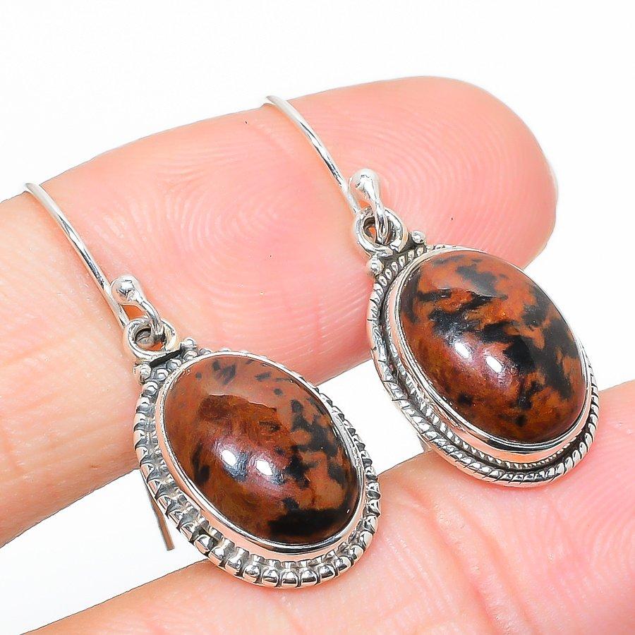 Серьги из стерлингового серебра 925 пробы с натуральным обсидианом красного дерева, 1,25 дюйма, R9P53