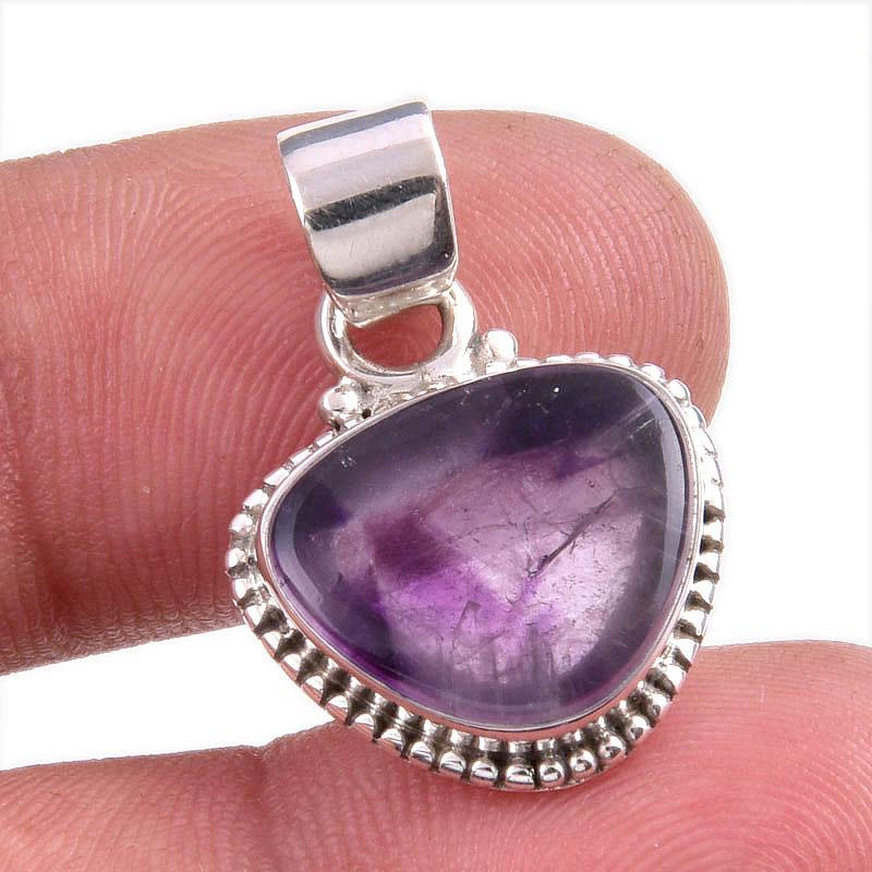 Подвеска из твердого серебра 925 пробы с натуральным облачным аметистом ручной работы 1,25 дюйма Y7c94