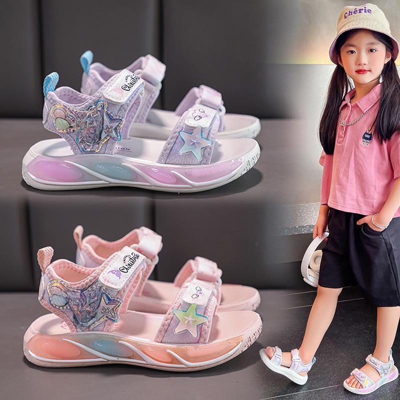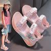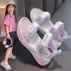 Сандалии для девочек, летняя спортивная модная пляжная обувь принцессы с кроликом, однотонная пляжная обувь на мягкой подошве