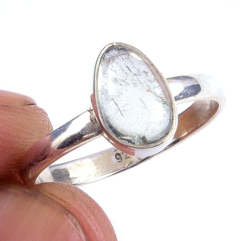 Кольцо из чистого серебра 925 пробы с натуральным аквамарином ручной работы S.6.5 G7G28