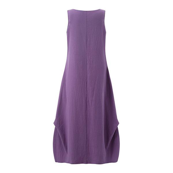 Летние женские платья больших размеров из хлопка и льна, свободные, с большим подолом, повседневные однотонные платья с круглым вырезом и карманами