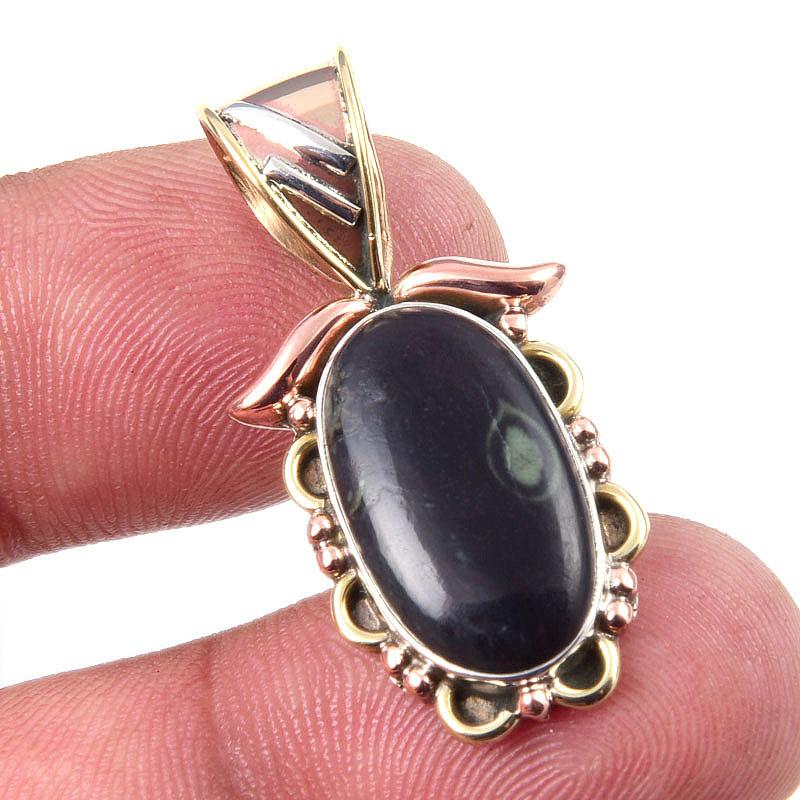 Натуральный зеленый питерсит драгоценный камень 925 проба серебро двухцветный кулон 1,25" Q1Y52