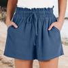 Женские льняные шорты, летние пляжные повседневные удобные шорты с эластичной резинкой на талии, легкие шорты на шнурке, повседневные шорты с карманами