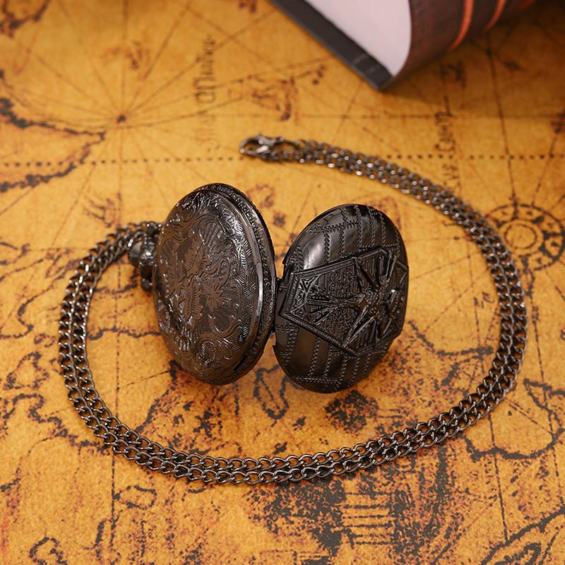 Модные классические мужские черные часы, мужские ретро-креативные кварцевые карманные часы с цепочкой, мужские подарки