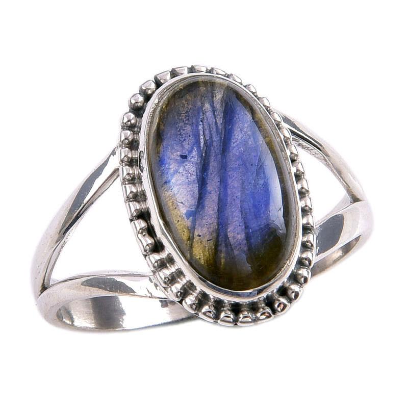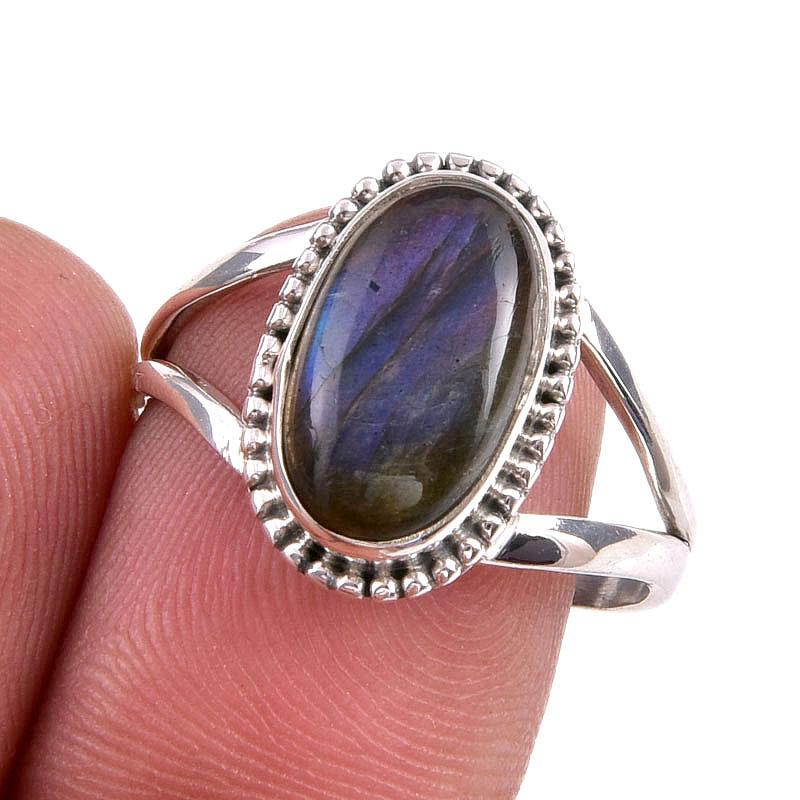 Ювелирное кольцо из чистого серебра 925 пробы с натуральным лабрадоритом, размер 9 R4q87