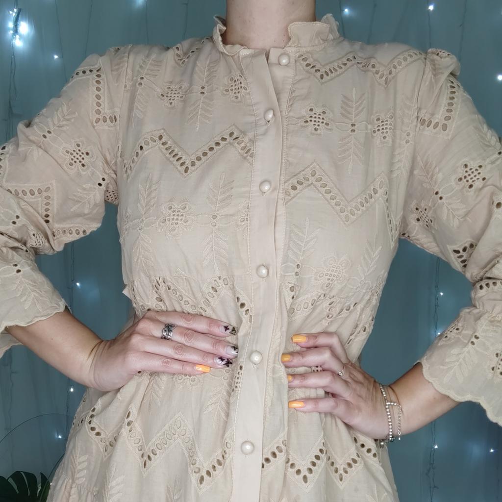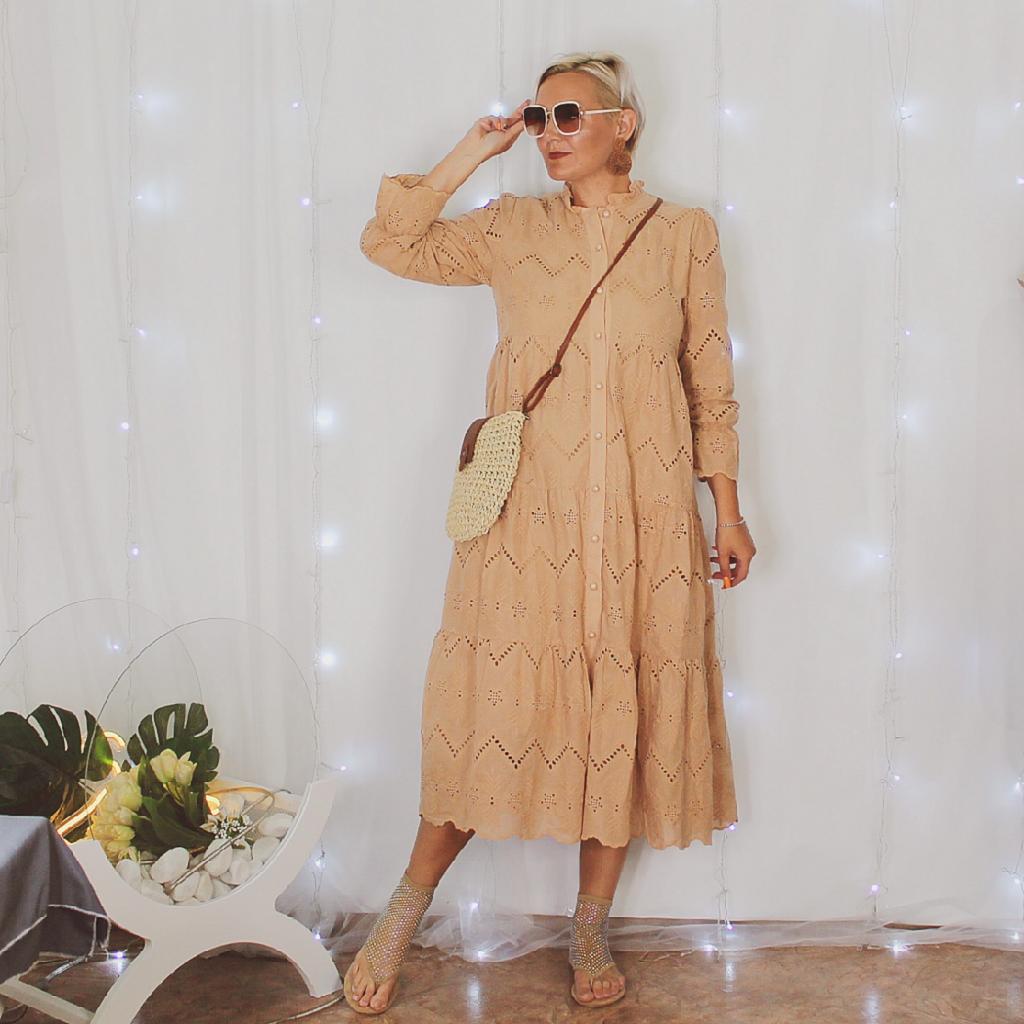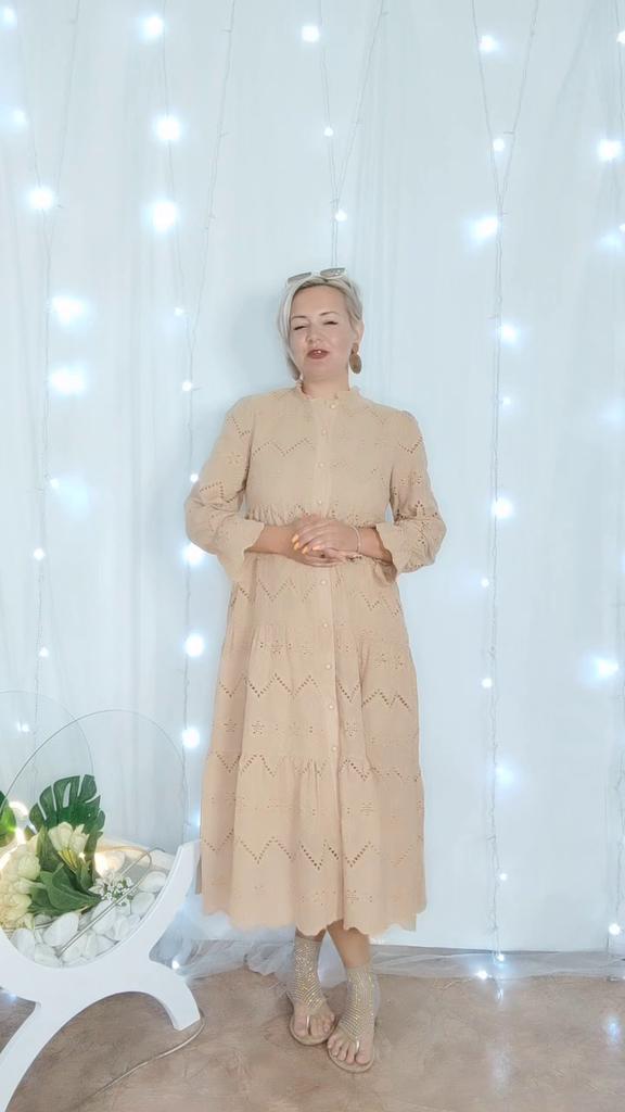 Мягкое кружево на хлопковой ткани🌸 Привет! Это платье на мой взгляд для особенных женщин, которые предпочитают свободные силуэт, но при этом не хотят потеряться в ткани, подчеркнуть свою женственность и уникальность. ‼️добавила разговорное видео, там больше деталей ‼️ Ткань: Сшито платье из двух видов ткани: Основная ткань - это хлопок, это тонкая и нежная ткань именно по нему выполнен набивной рисунок и кружево. Внутри подкладка из синтетической, но очень приятной, нежной и ласковой ткани. Не одна ткань, не тянется. Дизайн: Платье свободного кроя. Спереди застёгивается на ряд мелких пуговиц. От груди платье расширяется к низу нашитыми дпуг на друга воланами. На конеце рукавов вшита тонкая резинка. Нюансы: Для себя не нашла. Качество: К пошиву нет претензий Цвет: Бежевый Сезон: Весна/лето Размер: На мне единый размер. Мои параметры: рост 172 см 98/76/106 см Детали: Длина 125 см Плечи 37 см Длина рукава 58 см ОГ 102 см ОТ 94 см ОБ 118 см Резюмирую: Я считаю, что задумка производителя удалась! Удобное и практичное платье с собственным характером и эстетикой. Рекомендую 👍 Я не прощаюсь, M_K Картина_кружевом