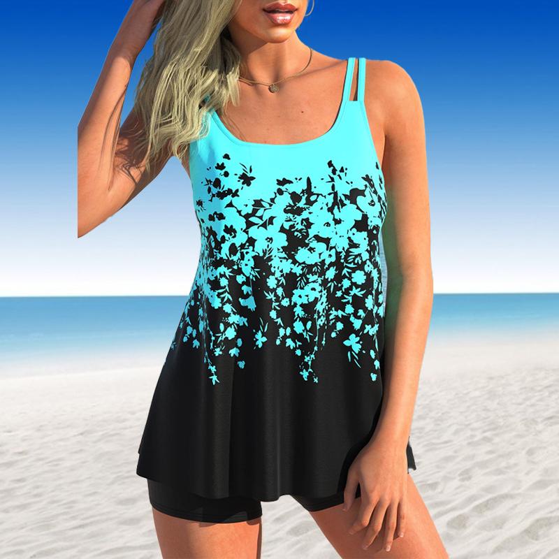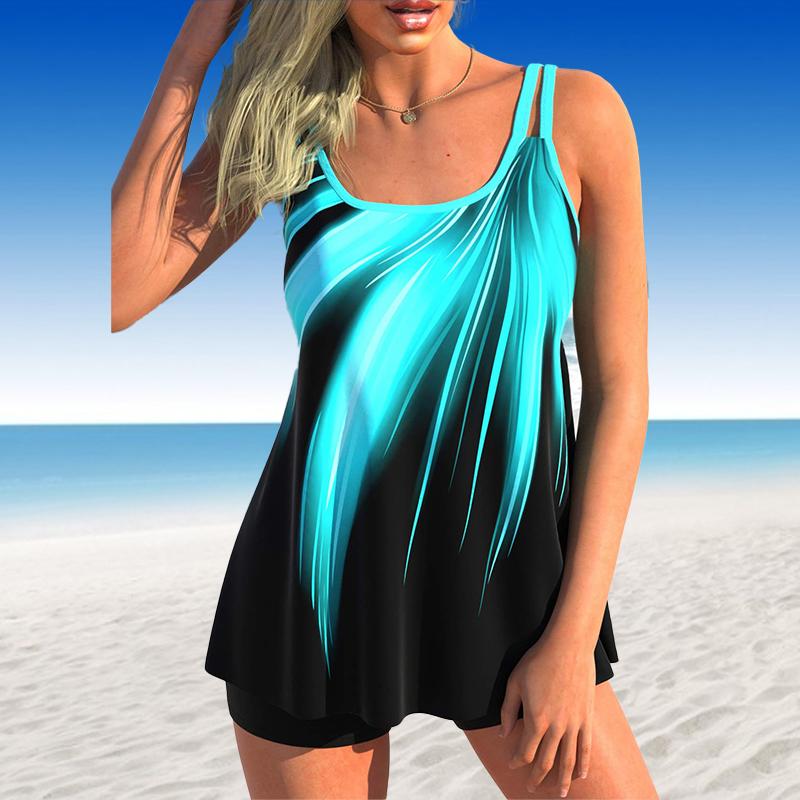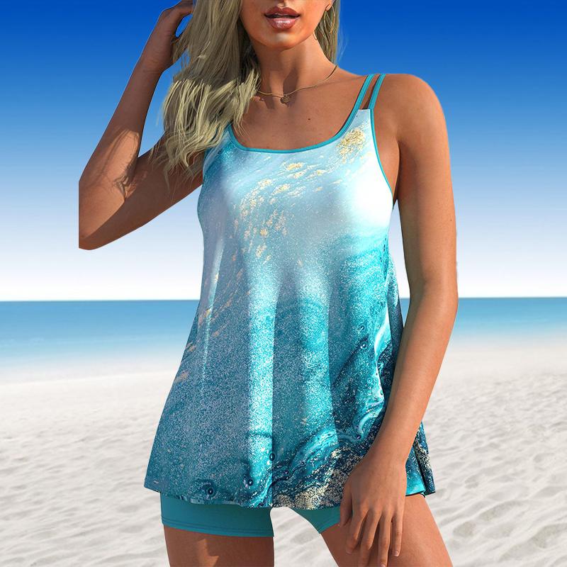 Жен. Купальники Танкини Купальник из 2 предметов Голубой сверкающий зыбучий песок с принтом Отпускные купальные костюмы