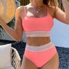 Купальники женские с открытой спиной, разделенный комплект бикини, трусики с высокой талией, сплошной цвет