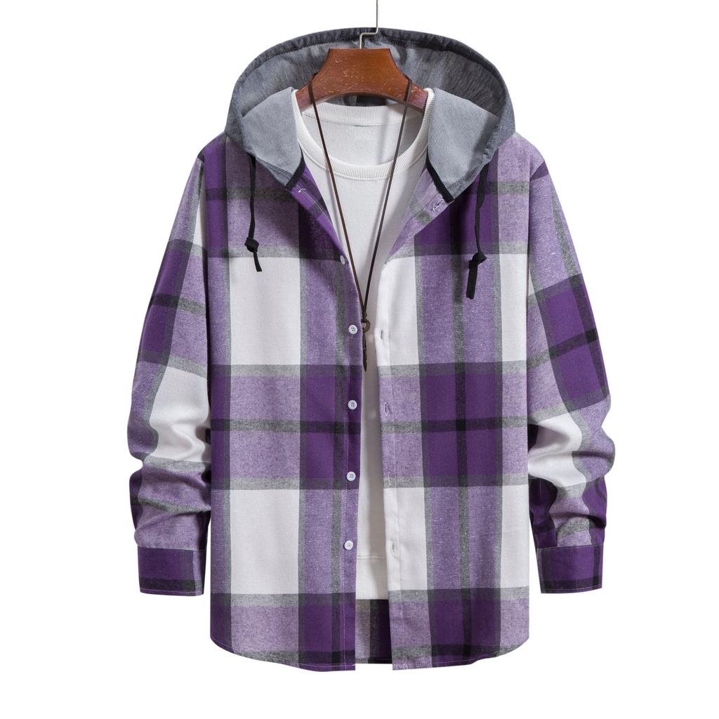 Мужской повседневный кардиган с капюшоном больших размеров, повседневная рубашка с капюшоном, клетчатая рубашка с длинным рукавом