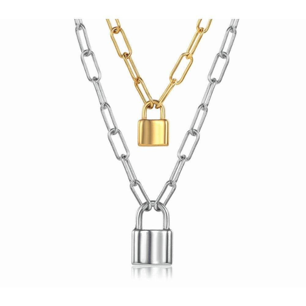 Любители золотого/серебряного цвета из нержавеющей стали скрепка Rolo Link Lock кулон ожерелье колье — купить товар онлайн с бесплатной доставкой по всему миру!